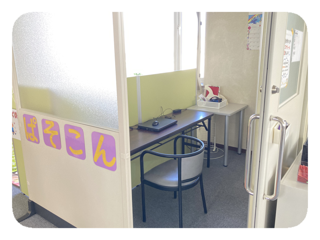 事業所内は活動内容に応じて区画分けされており、安全に過ごせるよう工夫しております。